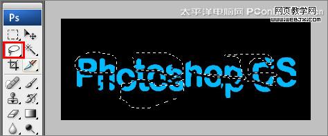 4、在工具箱中,選擇套索工具,接著選中文字圖層然后按住鍵盤中shift鍵結合鼠標在工作區(qū)中隨意套出幾個不規(guī)則圓形,按鍵盤上下鍵移動,如圖4所示。效果圖如圖5所示。