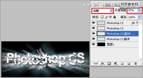 7、在復制一個文字圖層,設置圖層混合模式為溶解,設置不透明度為47%,如圖11所示。