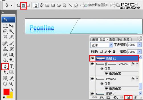 10、在圖層控制面板擊新建圖層按鈕,新建一個圖層9,在工具箱中選擇直線工具 ,在工作區中拖出一個直線形狀,如圖12所示