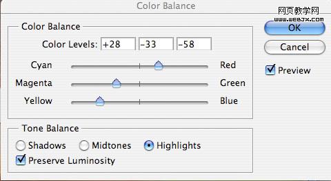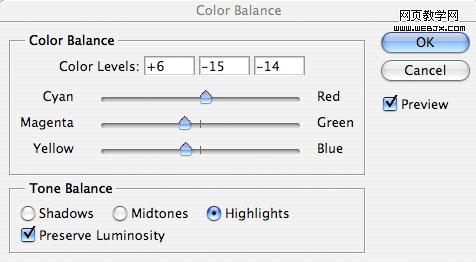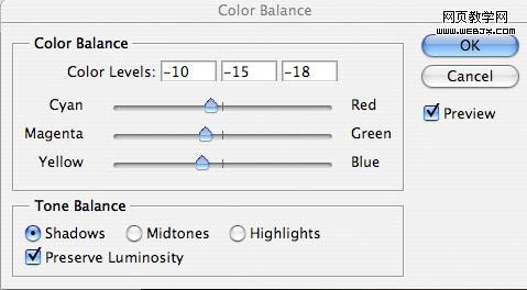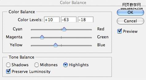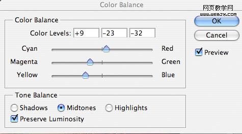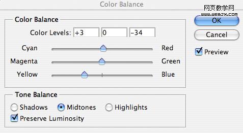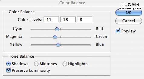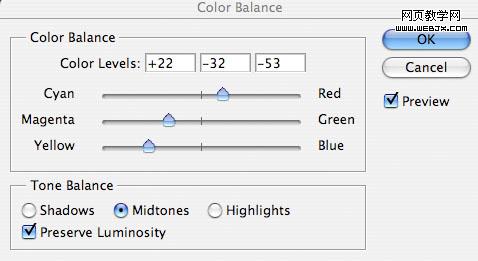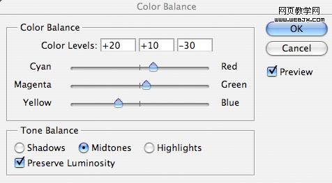 為了使天空和草地更好融合,我們調(diào)整色彩平衡,設置如下。
