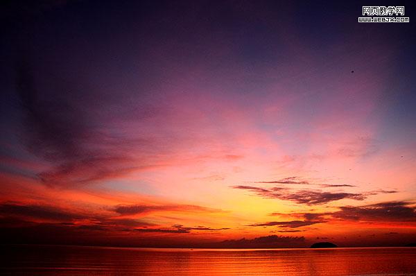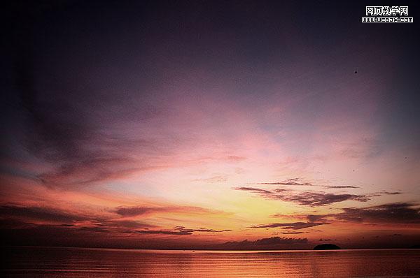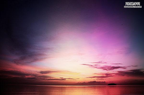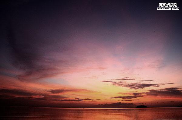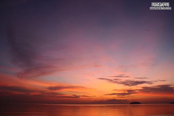 新建一個文檔,然后粘貼過一個夕陽天空圖片,命名圖層為sky。