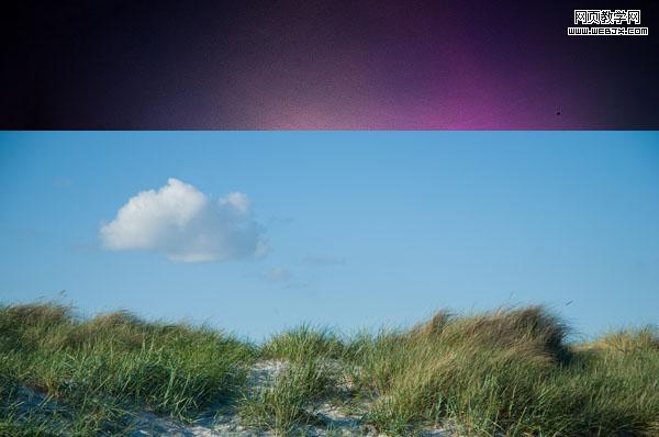 然后粘貼一幅草地和天空的圖片,調(diào)整大小,然后使用橡皮擦工具擦除天空部分,使兩幅圖片融合。