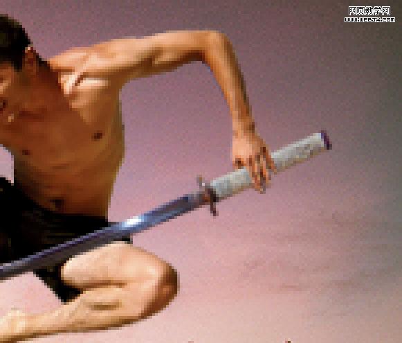 然后放大圖片我們調(diào)整細節(jié),使武士刀真的是飛起的勇士拿著,我們可以用套索工具把人物的手選擇出來,然后剪切,之后創(chuàng)建一個新圖層在武士刀圖層上面,然后粘貼。