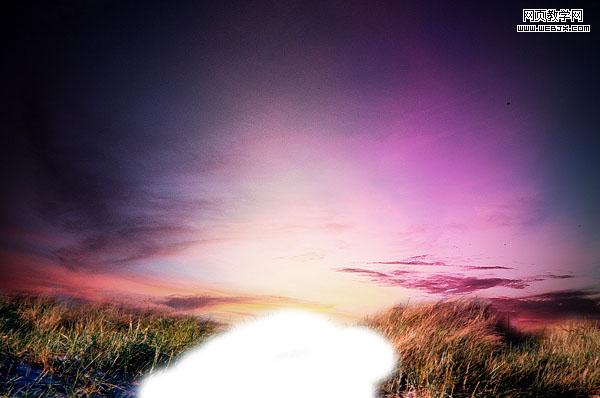 放大圖片,為了使天空和草地更好融合,我們修飾細節(jié)部分,使用橡皮擦去掉融合的白色邊緣,然后使用涂抹工具使之結合的更加好。