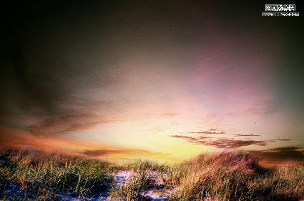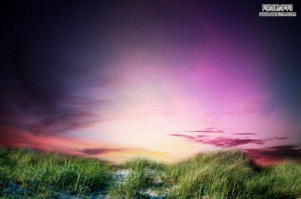 選擇原始的sky然后調(diào)整色彩平衡,然后降低sky gradient overlay’圖層的不透明度從50%到20%。