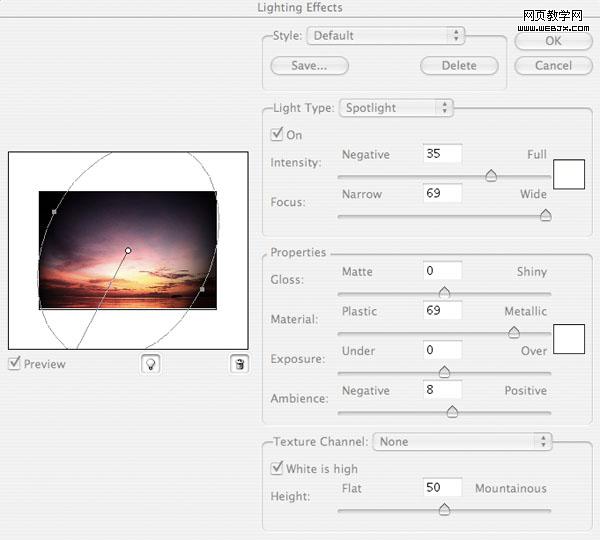 復制sky圖層,然后命名為sky light,然后執(zhí)行光效濾鏡,設置如下。