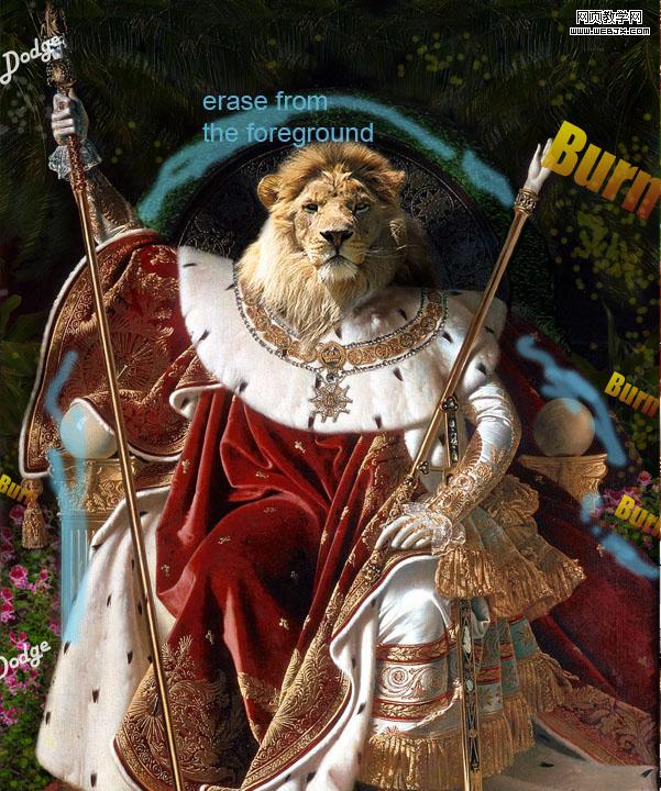 打開獅子素材圖,利用旋轉縮放等工具調試到合適位置及大小!