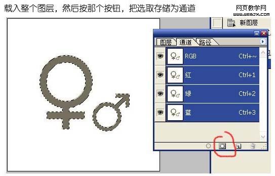 4、按ctrl 點圖層面板縮略圖調(diào)出選區(qū),然后點通道面板,點下面的蒙蔽按鈕保存選區(qū)。 |