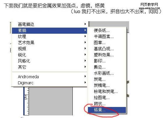 11、下面我們就是把金屬效果加強點。執(zhí)行:濾鏡 > 素描 > 鉻黃。 |