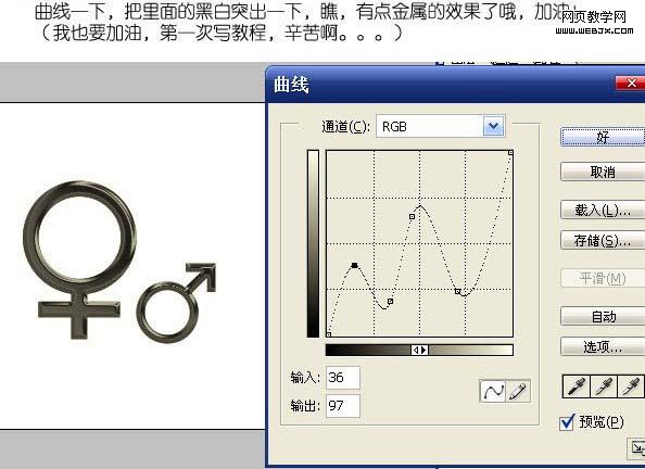 9、按ctrl + m 調(diào)整曲線,把里面的黑白突出一下,參數(shù)設(shè)置如下圖。 |