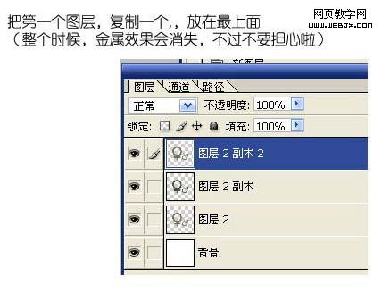 10、把第一個圖層復(fù)制一個,放在最上面(這個時候,金屬效果會效果,不過不要擔(dān)心)。 |