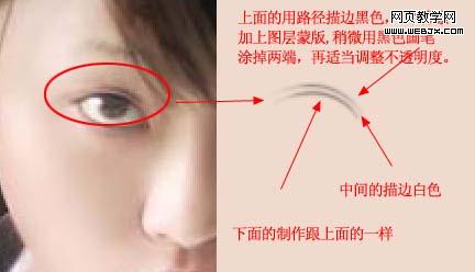 9、雙眼皮的處理,如圖13,由于原圖素材比較小,處理的時候描邊1個像素就夠了,下眼皮的處理方法一樣,效果如圖14。