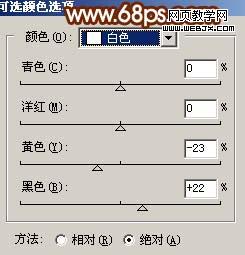 8、創(chuàng)建可選顏色調(diào)整圖層,對白色進行調(diào)整,參數(shù)設(shè)置如圖11,確定后只保留衣服部分,其它部分用黑色畫筆擦掉,效果如圖12。