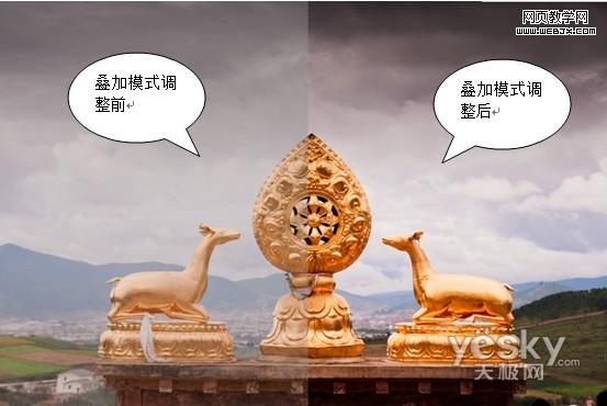 還是以前面的照片為例,我們首先按“ctrl+j”復制一個圖層。然后將復制后的圖層混合模式設置為疊加模式,照片的對比度立刻變得強烈起來了(圖5)。