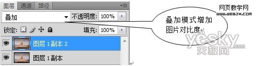 色階調整方便簡單,不過,通過圖層模式的設置,我們同樣可以快速地調節照片的對比度。
