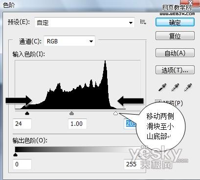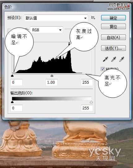 也許很多有心的朋友在課前預習中已經注意到了,色階工具中的直方圖下面有幾個小滑塊,既然能夠查看直方圖,我們是不是也可以利用小滑塊來調整照片的對比度呢?