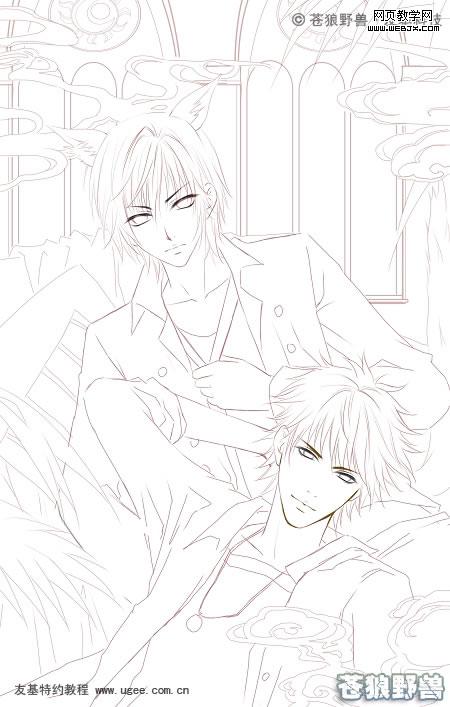 2.整理線稿。擦除多余的線,將線條清晰明了的畫出來,然后保存進(jìn)ps里調(diào)整顏色。有些筆會帶有橡皮,但我覺得那個并不常用到,也不太方便。以前我的線稿都是在cs里描的,其實ps和pt也都可以,cs是畫黑白的專業(yè)軟件,單純的線稿不一定要在cs里才可以,我用的還是pt里的覆蓋鉛筆。