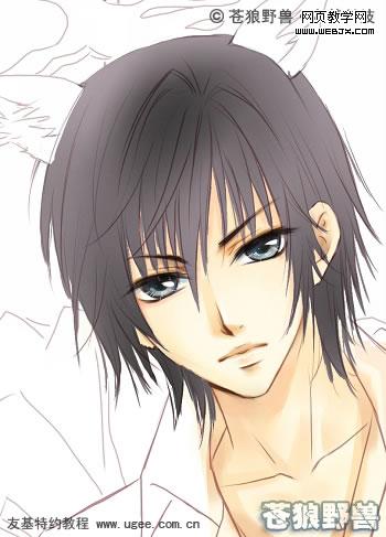 5.頭發(fā)也是一樣,不過頭發(fā)上色的時候不能和皮膚色一樣往線外鋪色,填滿之后還需要建立選區(qū)用噴槍畫出顏色的過度。