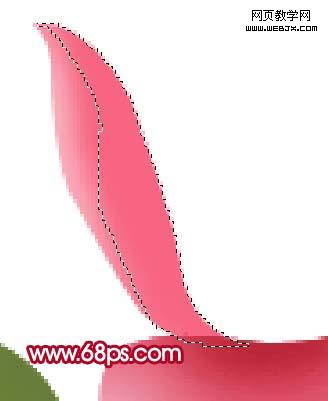 13、適當把圖層放大,用鋼筆工具勾出下圖所示的路徑,轉為選區(qū)后填充顏色#fde6ee,效果如圖16,再用畫筆涂上一些暗調(diào)顏色效果如圖17。