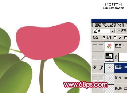 12、在剛才的花瓣圖層下面新建一個圖層,用鋼筆工具勾出另一枚花瓣,填充顏色后稍微調(diào)整下明暗度,如圖14。