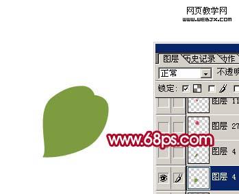 2、鎖定圖層,如圖3,把前景顏色設置為:#6e7643,選擇畫筆工具,不透明度設為:10%左右,把葉子的左邊部分涂暗一點,效果如圖4。
