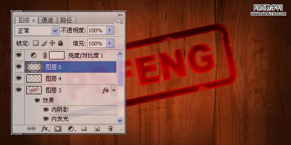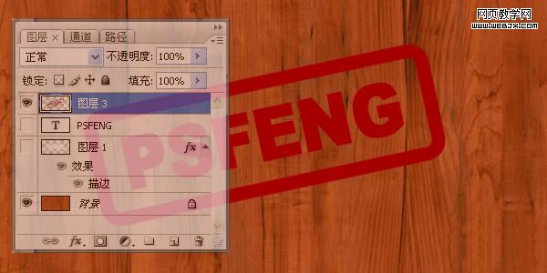 5.只顯示蓋印層和背景層,然后把文字變成暗紅色,并旋轉(zhuǎn)一定角度,如圖: