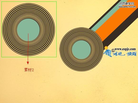 8.打開“素材2”,如圖12左上角圖形所示。用移動工具將其拖至當前畫布中,得到“圖層2”。結合自由變換控制框調整圖像并移動位置,得到效果如圖12所示。