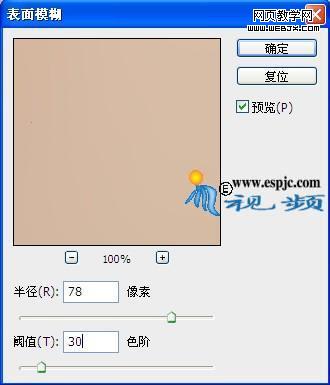 3.選擇“濾鏡”|“模糊”|“表面模糊”命令,并設置其對話框如圖3所示,得到如圖4所示效果。