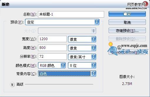 1.按ctrl+n鍵創建一個文件,并按圖1設置參數,得到一個新文件。設置前景色為#e9e9e9,按alt+delete鍵以前景色填充背景圖層,得到如圖2所示效果。