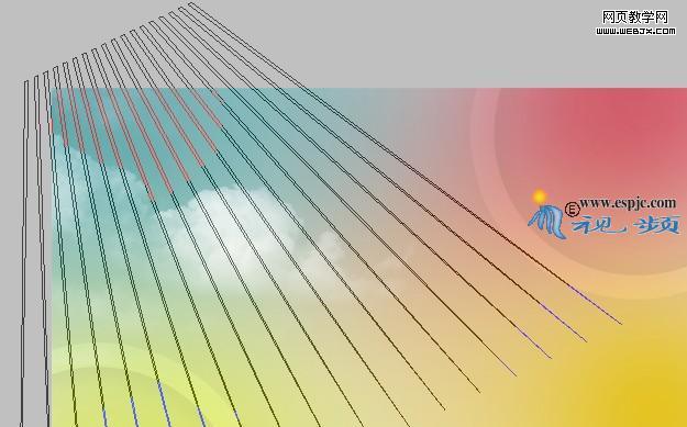 10設置前景色為白色,選擇鋼筆工具,在工具條上選擇形狀圖層,繪制如圖20所示的形狀。得到“形狀1”,結合自由變換控制框應用透視命令制作如圖21所示的效果。設置其混合模式為“柔光”,“不透明度”為20%,得到的效果如圖22所示。