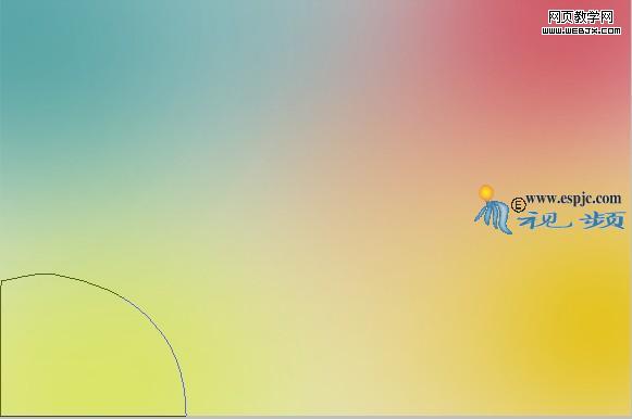 4.選擇“背景”圖層,選擇橢圓工具,在工具選項條上選擇路徑按鈕,在當前文件左下角繪制如圖7所示的路徑,單擊創建新的填充或調整圖層按鈕,在彈出的菜單中選擇“漸變”命令,并設置其對話框如圖8所示,得到如圖9所示效果,同時得到圖層“漸變填充1”。