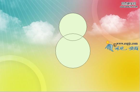 12.設置前景色為#e6f8cf,選擇橢圓工具,在工具條上選擇形狀圖層按鈕及添加到形狀區域按鈕,在當前文件中繪制如圖25所示的形狀。得到“形狀2”。