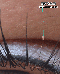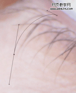 現(xiàn)在,放大圖片中眼睛上面的睫毛部分( ctrl + + ),并開始使用我們選中的鋼筆工具。我們的目的是讓我們繪制的鋼筆路徑盡可能的切合眼睫毛實際的形狀(別怕歐,其實稍加練習,你就會知道那其實并不難)。當我繪制上睫毛的時候,我通常使用3個節(jié)點,因為那樣更加易于調(diào)整曲線的弧度。我們添加睫毛的地方應(yīng)該是真實睫毛稀疏的地方和睫毛與睫毛之間的空曠地帶。另外值得注意的地方就是,睫毛路徑的粗細和顏色應(yīng)當有所變化,你可以看看接下來我是怎么干的。