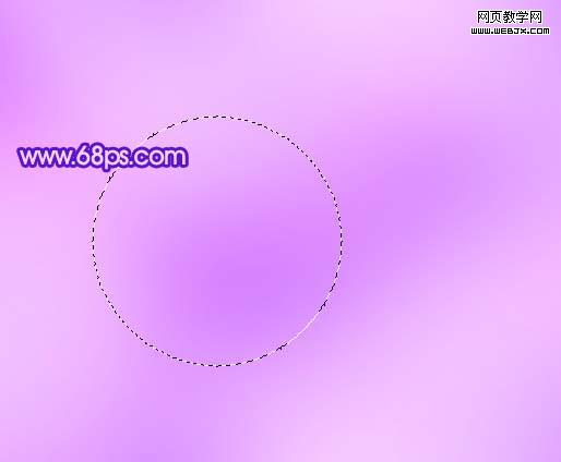 5、新建一個(gè)圖層,用橢圓選框工具拉出圖8所示大小的正圓,按ctrl + alt + d 羽化50個(gè)像素,然后填充顏色:#8f60ff,取消選區(qū)后效果如圖9。