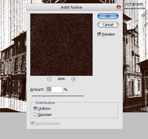 再對于云層進行加雜色filter > noise > add noise,參數(shù)如下
