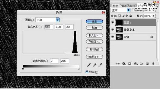 為了更好的表現(xiàn)雨絲的感覺,執(zhí)行色階命令(ctrl+l)。