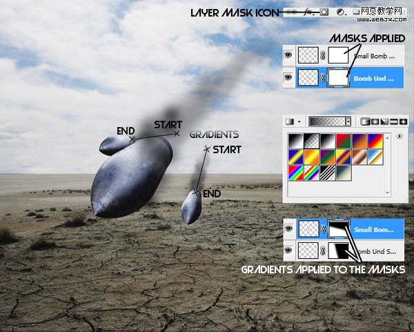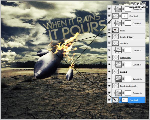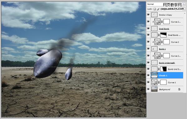 本photoshop教程教你把幾幅照片合成一個(gè)經(jīng)典的燃燒的飛彈戰(zhàn)爭場面,主要利用photoshop基本工具,合成一個(gè)好的效果,主要是圖片的調(diào)整,色彩調(diào)整,濾鏡的實(shí)用等。