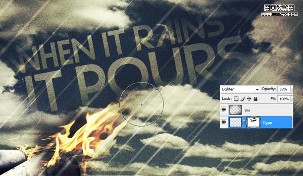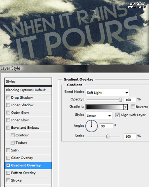 在云彩的中間添加文字,然后設(shè)置圖層樣式。圖層不透明度設(shè)置為35%,效果如下。