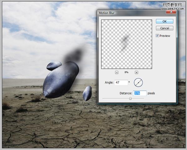 復(fù)制煙霧圖層,然后執(zhí)行動(dòng)感模糊。