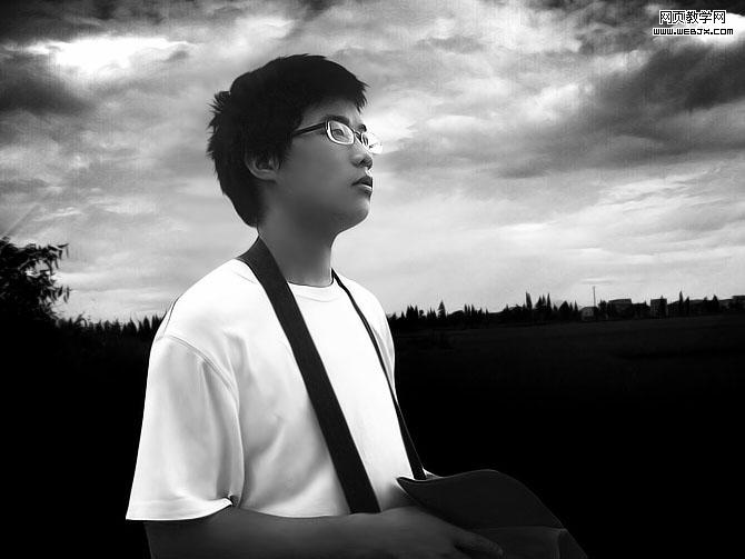 原圖素材由于光線較暗,而且背對著光影。人物部分基本看不清楚。