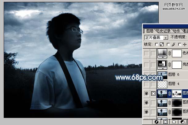 4、新建一個圖層,蓋印圖層,圖層混合模式改為“正片疊底”,確定后用黑色畫筆把中間部分擦出來,如圖4。