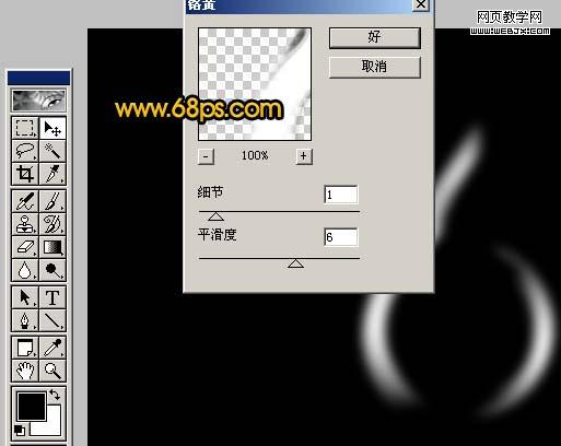 4、把前景顏色設置黑色,背景設置為白色,執行:濾鏡 > 素描 > 鉻黃,參數設置如圖5,效果如圖6。