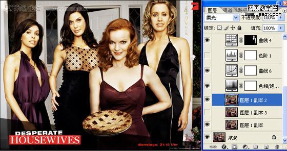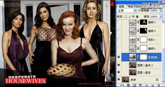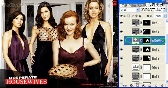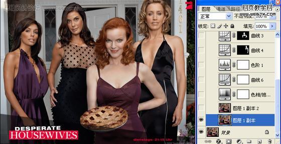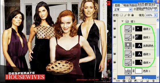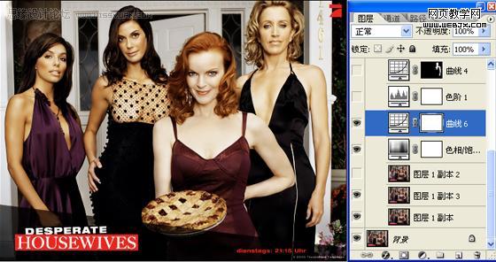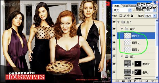 5、由于四個(gè)人的光線不同,所以對(duì)人物身上的亮度要分開(kāi)處理,先說(shuō)左邊的兩個(gè)人,這兩個(gè)人的光線比較暗,摳出來(lái)之后調(diào)整曲線,使她們和另外兩個(gè)人的亮度容和起來(lái),但是要注意的是,第2個(gè)女人的胸部要分開(kāi)調(diào)曲線,要喑一點(diǎn),不能太亮,再用相同的方法去處理右邊的兩個(gè)女人,這里的曲線調(diào)整參數(shù)我就不細(xì)說(shuō)了,大家看著下手。