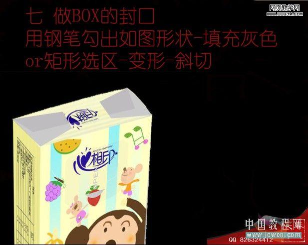 本教程介紹包裝效果的制作。制作之前需要了解包裝盒的幾個面,然后分別作出各個面的平面效果圖。然后按照透視效果把做好的畫面貼上去即可。
