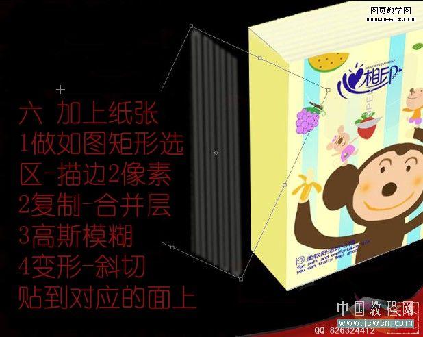 6、加上紙張:做如圖矩形選區,描邊2像素。復制合并圖層,執行:濾鏡 > 模糊 > 高斯模糊,數值自定。然后變形處理貼到對應的面上。