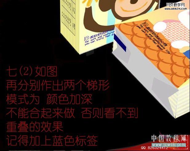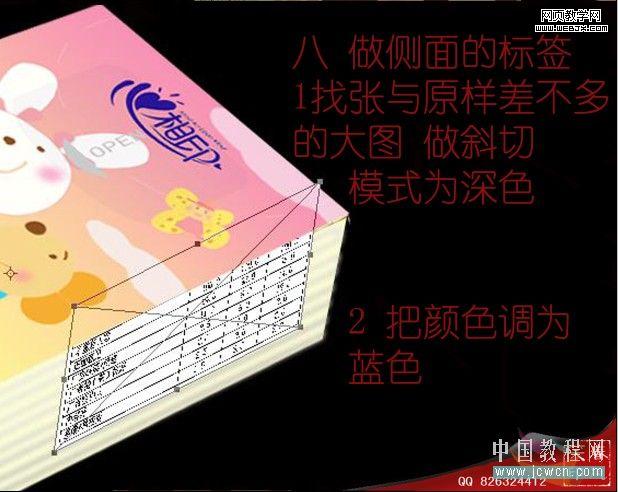 9、做側面的標簽,找張與原樣差不多的大圖,做斜切,模式為深色。把顏色調成藍色。
