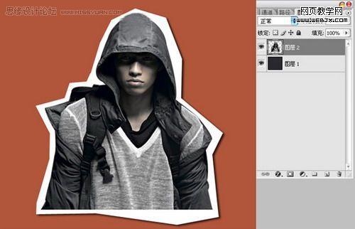 第2步,然后把找到的素材人物用鋼筆工具扣下來,移到文件中