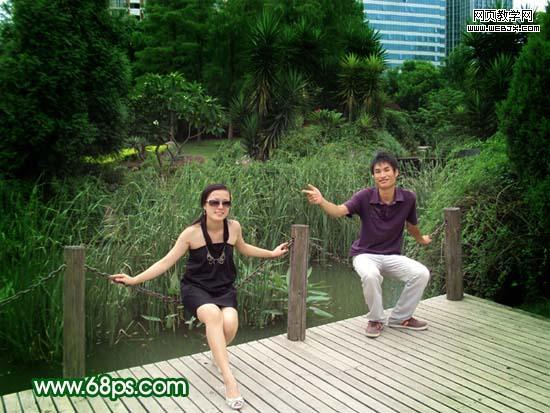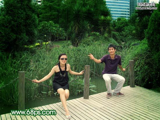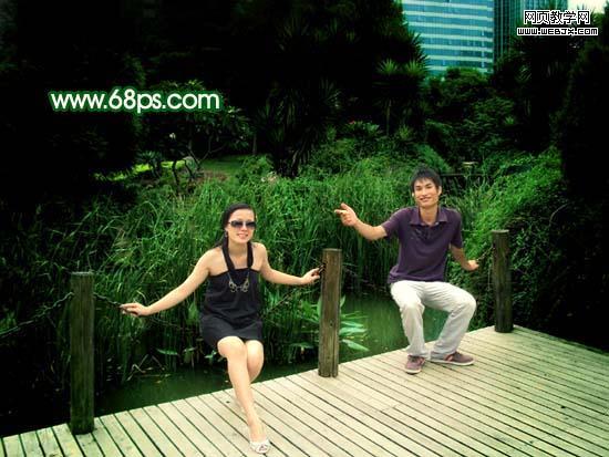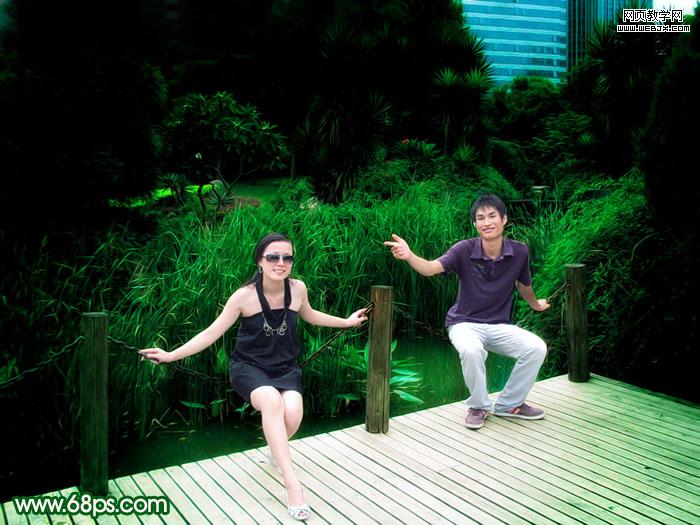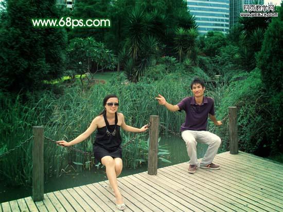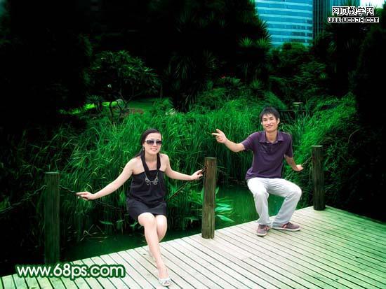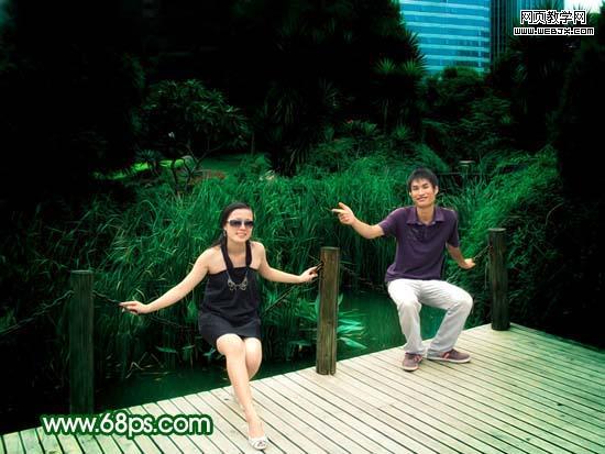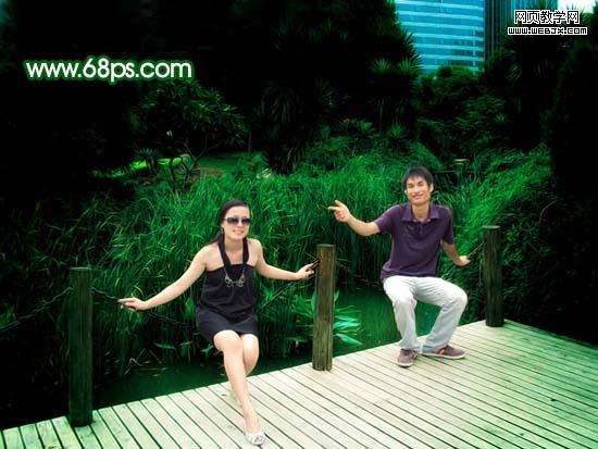 原圖素材基本上也是綠色的不過色調(diào)有點(diǎn)灰。調(diào)色的時(shí)候可以把背景部分調(diào)成純綠色,再適當(dāng)給人物部分調(diào)整下顏色即可。