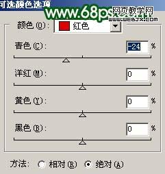 3、創(chuàng)建可選顏色調(diào)整圖層,參數(shù)設(shè)置如圖6,效果如圖7。