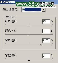 9、創(chuàng)建通道混合器調(diào)整圖層,參數(shù)設(shè)置如圖17,效果如圖18。